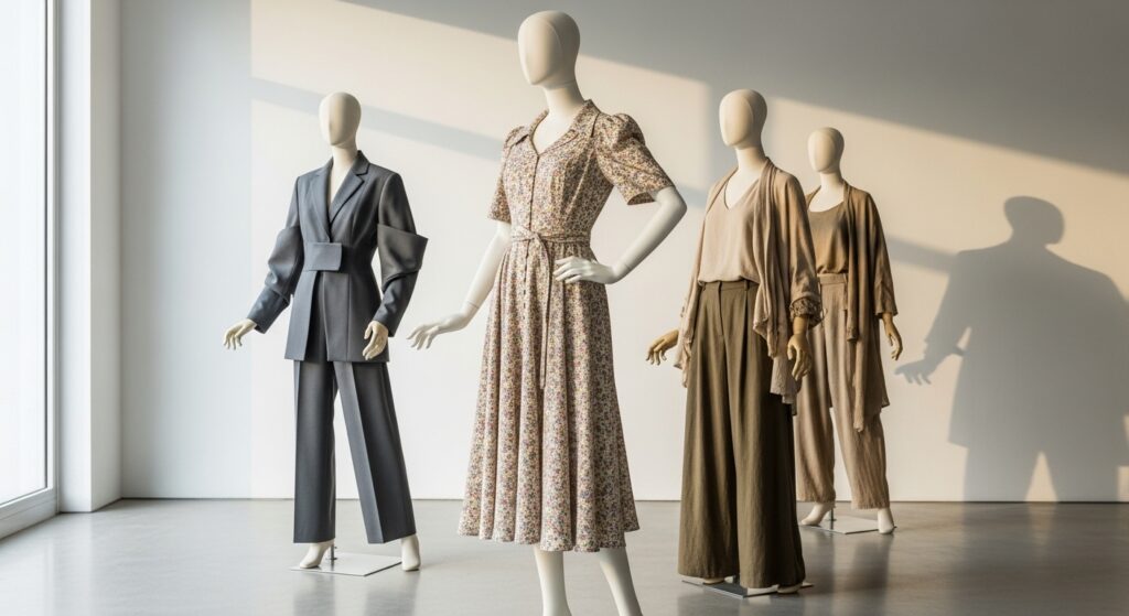 - 得意アイテム: オーバーサイズのコート、デザイン性の高いロングスカート、ゆったりとしたシルエットのドレス。