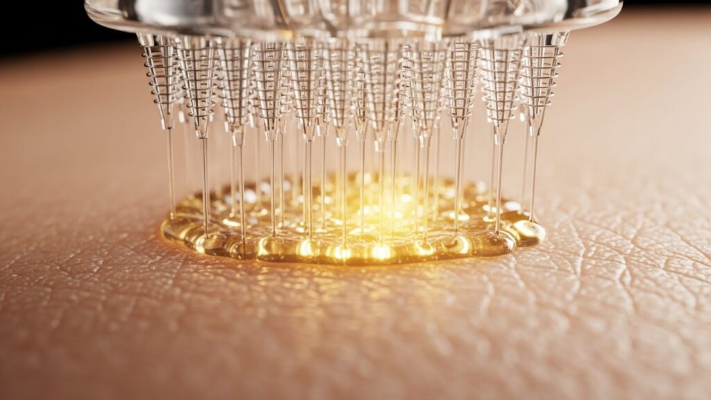 通常、肌には外部からの異物侵入を防ぐ強力なバリア機能があるため、手で塗るだけの美容液はなかなか奥まで浸透しません。しかし、この微細な針が角層のごく浅い部分に物理的にアプローチすることで、美容成分をダイレクトに届けることが可能になるのです。