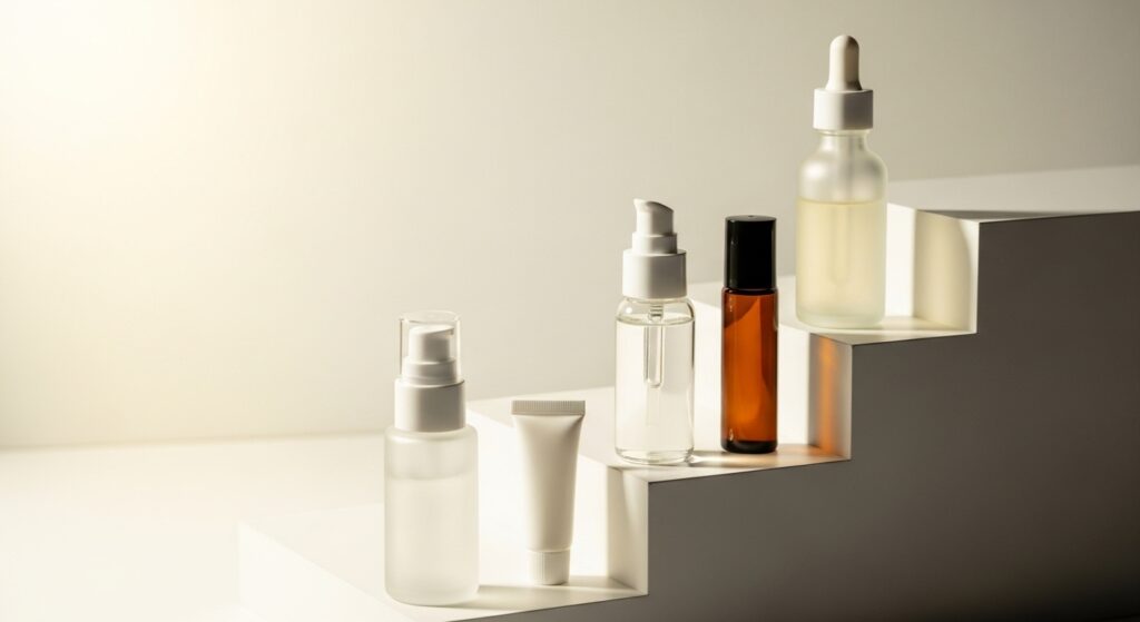 無印良品が推奨している順番は、レチノール誘導体、ビタミンC誘導体、ナイアシンアミド、セラミドの順です。これは、保湿力がより高いものを後に使用するという考え方に基づいています。この順番で重ねることにより、それぞれの美容成分が角質層へ効果的に浸透しやすくなります。朝はビタミンCで紫外線ダメージに備え、夜はレチノールで肌の修復を促す、といった時間帯による使い分けも賢い方法です。