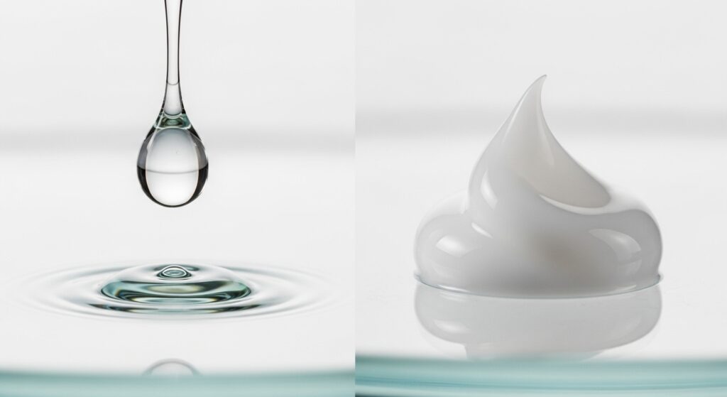 一方、高濃度オールインワンセラムは、化粧水・美容液・乳液の3つの役割を1本で担う多機能アイテムです。こっくりとした保湿力の高いジェルタイプで、忙しい時や手軽にケアを済ませたい時に非常に便利です。どちらを選ぶかは、あなたのライフスタイルやスキンケアにかけられる時間によって決めると良いでしょう。