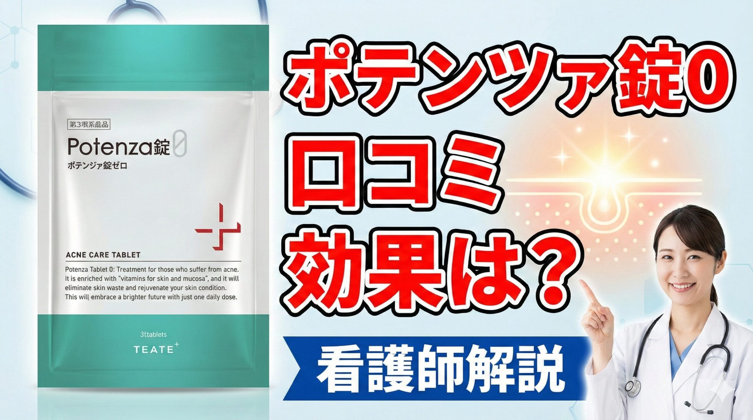 - ポテンツァ錠0: 内服によって全身の栄養状態を改善し、肌荒れやニキビを内側からケアする「内科的・全身的」な医薬品。