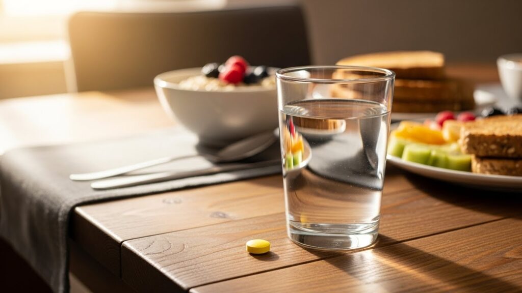 効率的に吸収させるためのベストなタイミングは「食後」です。食事に含まれる他の栄養素と一緒にゆっくりと消化吸収されることで、血液中のビタミン濃度を長時間維持しやすくなります。また、胃腸への負担を減らす意味でも、胃に何かが入っている状態で服用することをお勧めします。1日1回の服用であれば、活動量が多く代謝が活発になる「朝食後」か、成長ホルモンが分泌され肌の修復が進む「夕食後」に習慣づけると良いでしょう。